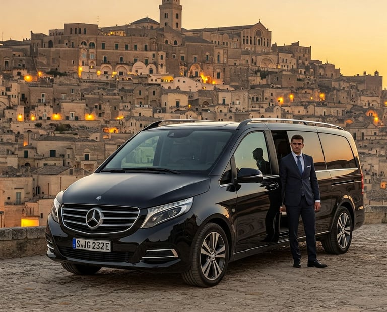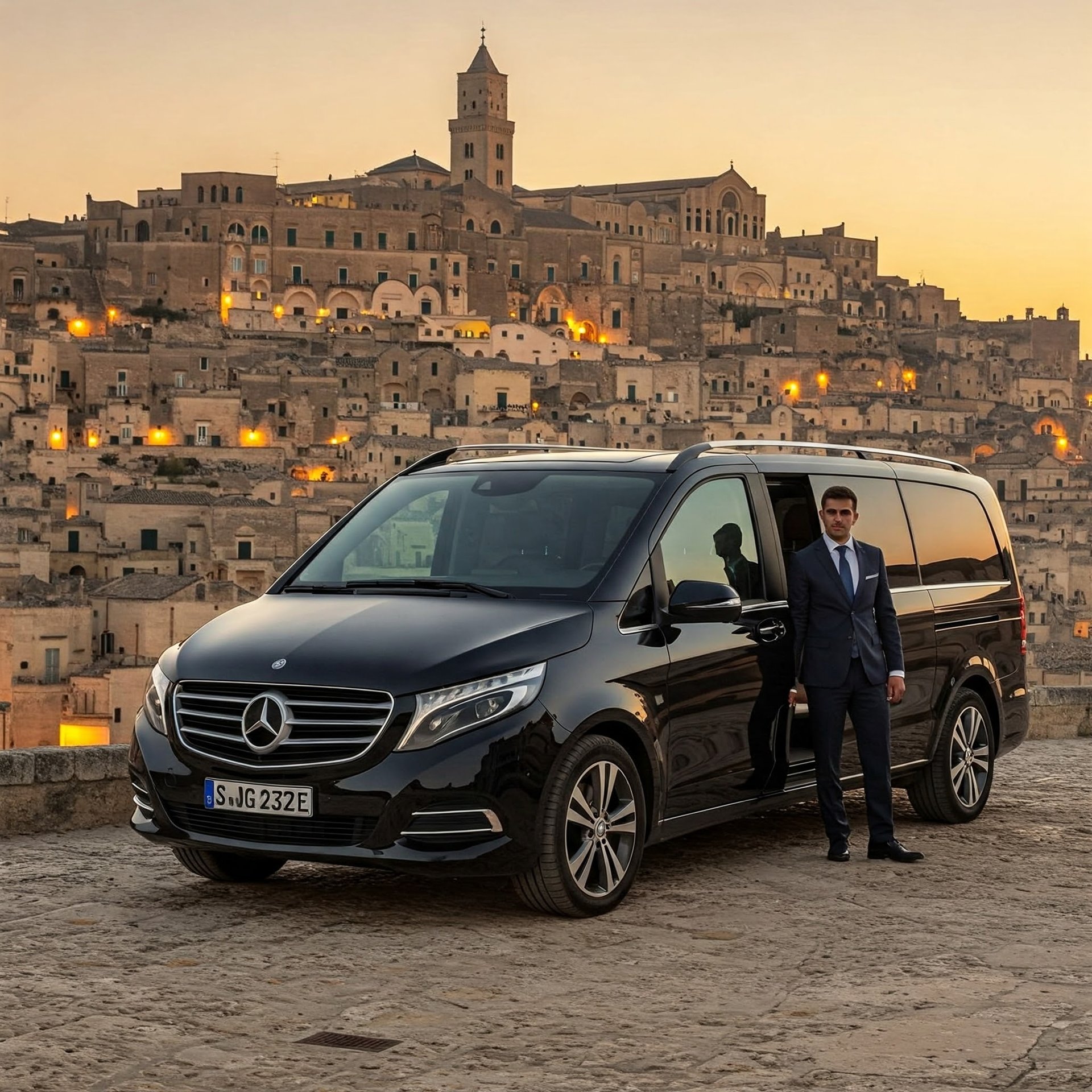 NCC H24 su prenotazione per corse urbane: da e per Hotel, Ristoranti nei Sassi, Belvedere Murgia Timone, Cripta del Peccato Originale