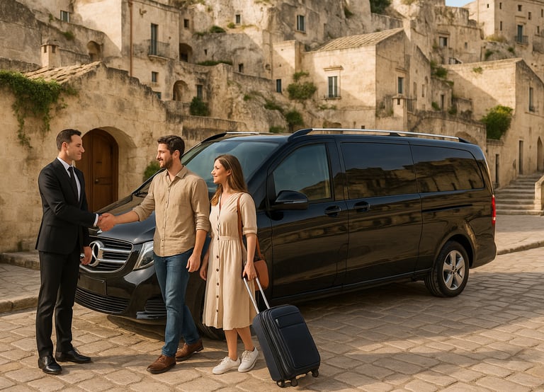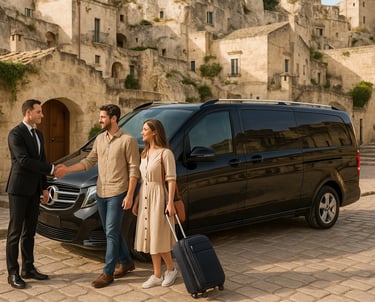 NCC H24 su prenotazione per corse urbane: da e per Hotel, Ristoranti nei Sassi, Belvedere Murgia Timone, Cripta del Peccato Originale